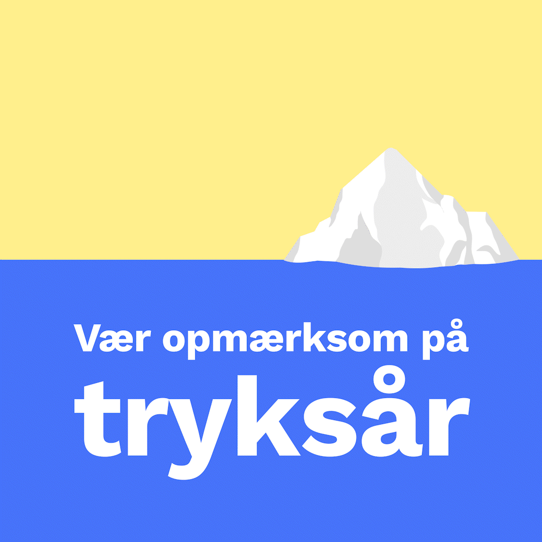 I 2022 og 2023 blev der rapporteret mere end 3.600 utilsigtede hændelser om tryksår til Styrelsen for Patientsikkerhed. Næste to tredjedele handlede om manglende forebyggelse eller forkert brug af hjælpemidler. Langt de fleste tryksår kan forebygges og vi håber derfor, at I vil være med til at tage dialogen om tidlig forebyggelse med jeres kollegaer, patienter og deres pårørende.