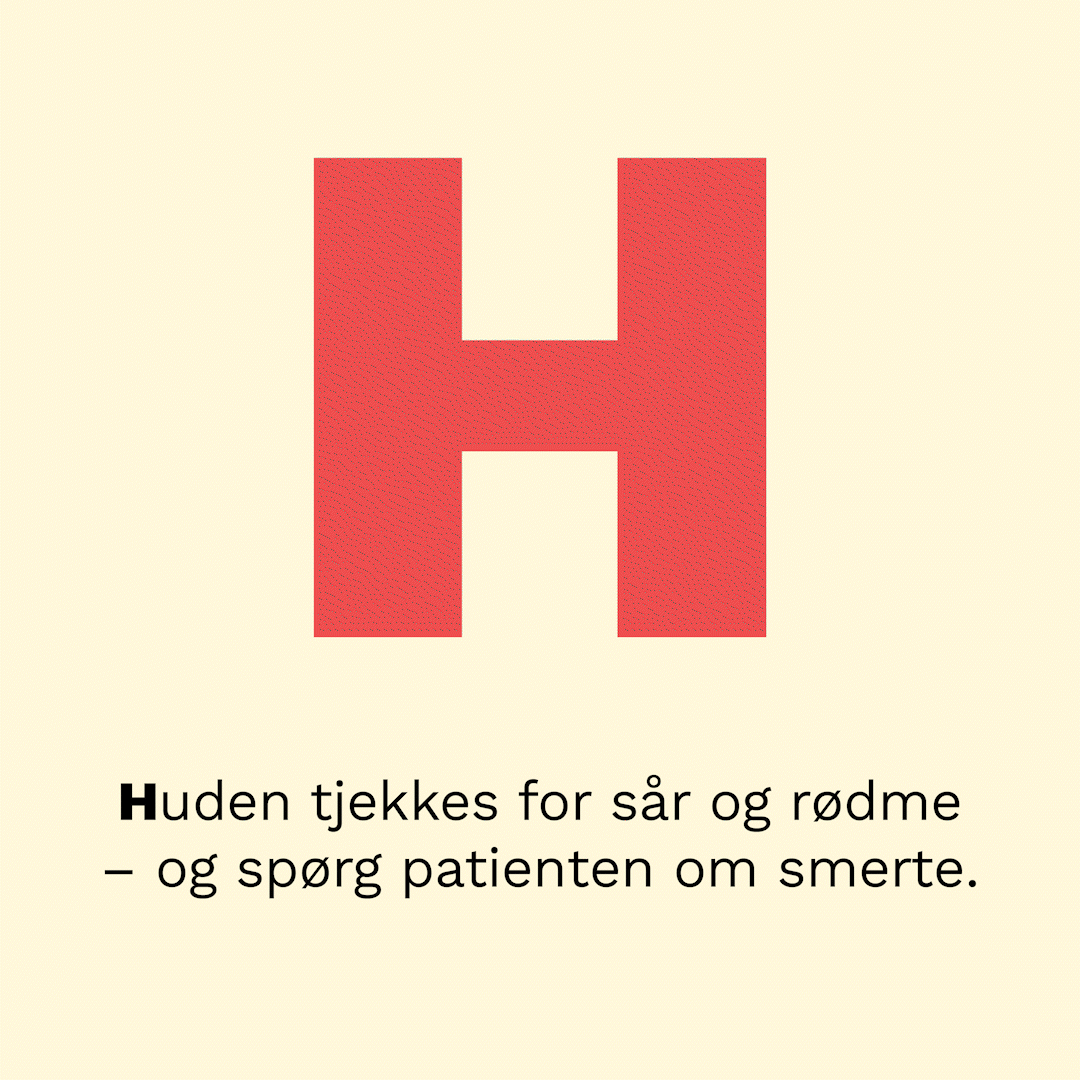 HUSKE er en nem remse med fem vigtige råd, som allerede anvendes flere steder i sundhedsvæsenet til at forebygge tryksår.