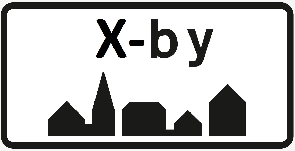 Tættere bebygget område er afmærket med en E55-tavle. Nogle kalder det også byområde eller en bytavle.